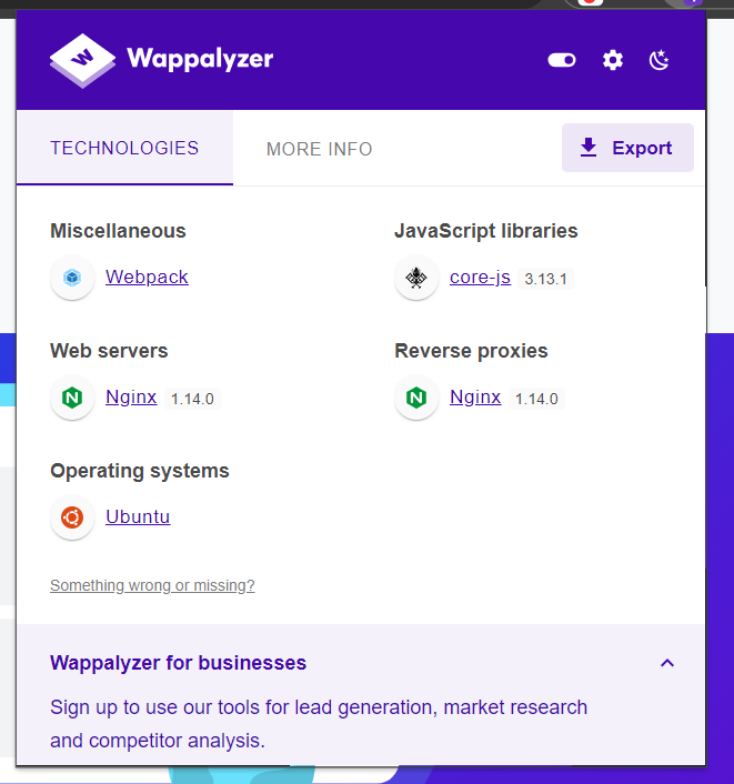 Looking at the wappalyzer doesn’t really get us much more information.